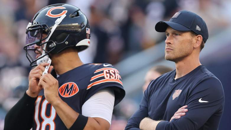 GettyQuarterback Caleb Williams (left) and head coach Ben Johnson (right) of the Chicago Bears.