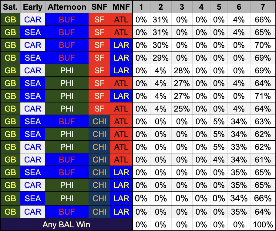 Obviously, we all want the Packers to win this game. If they lose to the Baltimore Ravens, Green Bay will be locked into the seventh seed, according to the New York Times/The Athletic’s simulation. A Packers win, even if the Chicago Bears win on Sunday, still allows Green Bay to play for the fifth and sixth seeds in the wild-card race.