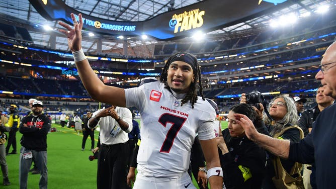 INGLEWOOD, Calif. – Houston Texans quarterback C.J. Stroud waves to fans following a game against the Los Angeles Chargers at SoFi Stadium on Dec. 27, 2025. Photo: Gary A. Vasquez-Imagn Images