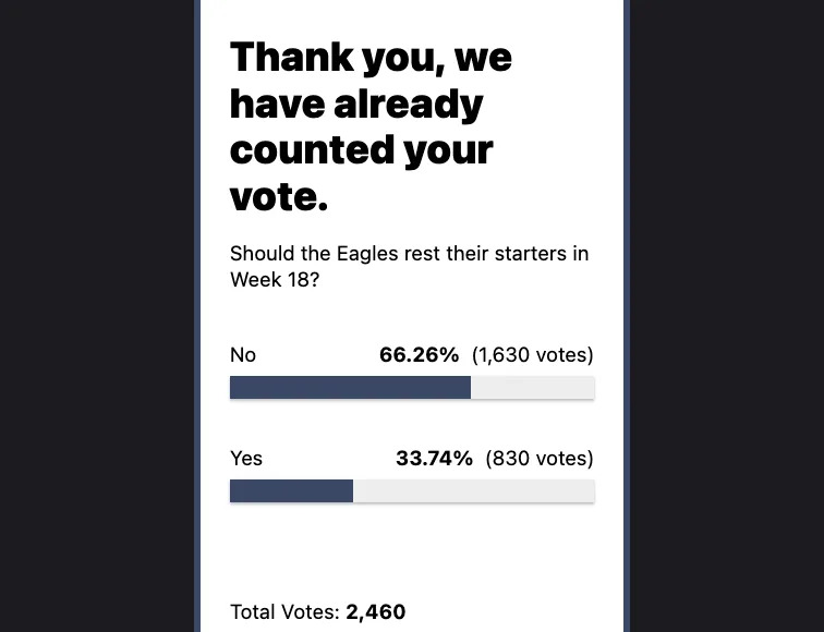 There appears to be increasing sentiment that the Eagles will indeed prioritize rest despite the fact that the Eagles must do their part to win to have a chance at the No. 2 seed in the NFC playoff picture.