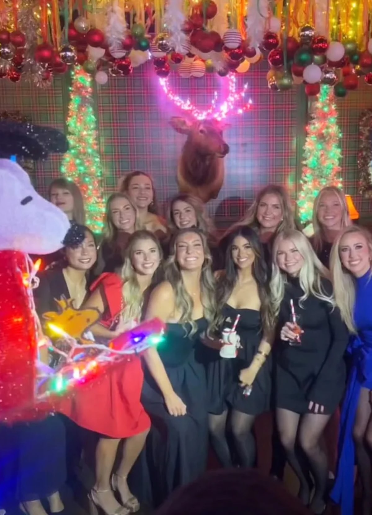 While Brittany was in the front row with some of the other girls, Taylor opted to stand in the back, almost hidden by a Snoopy display.