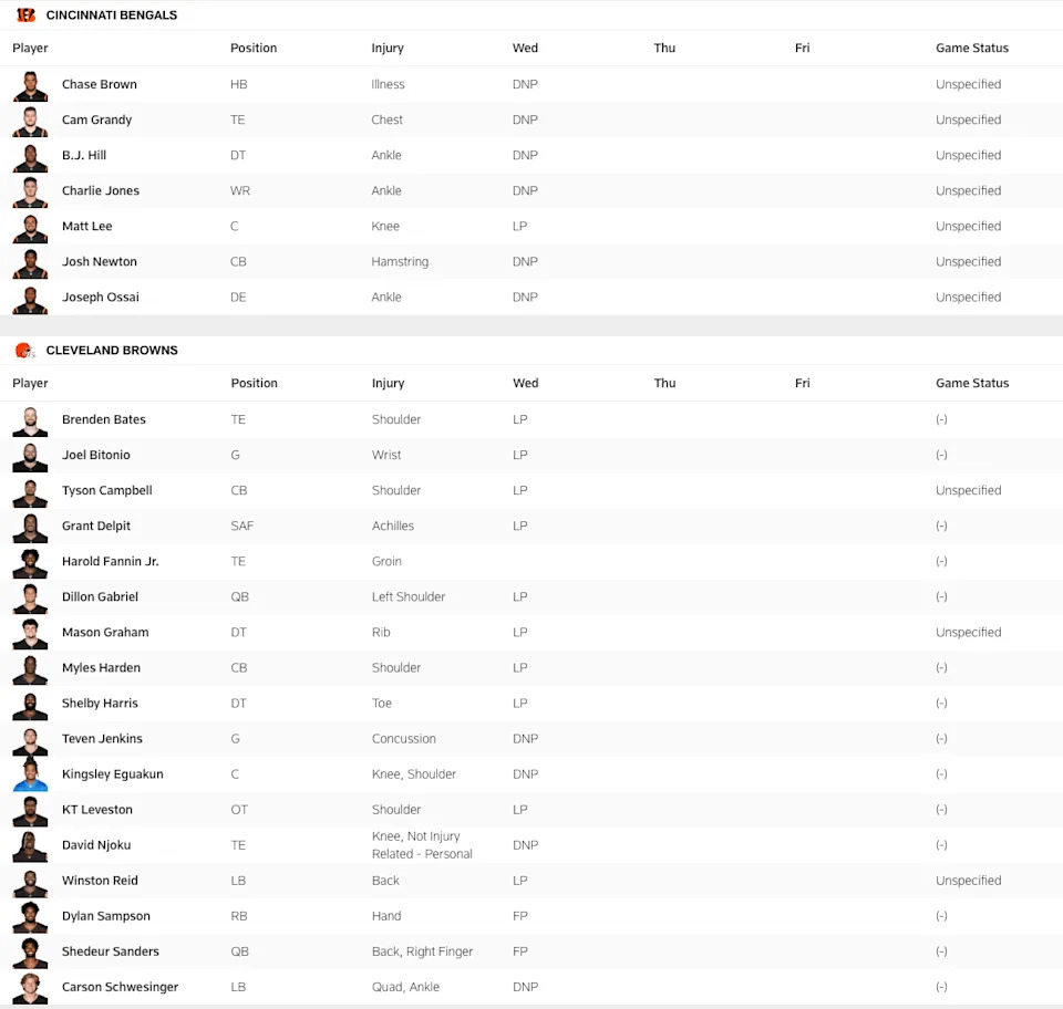 One final game for the Cincinnati Bengals, as they finish off a disappointing 2025 season with a home game against the Cleveland Browns. Looking to finish the season strong, the Bengals had several players miss practice on Wednesday, per the team’s injury report.