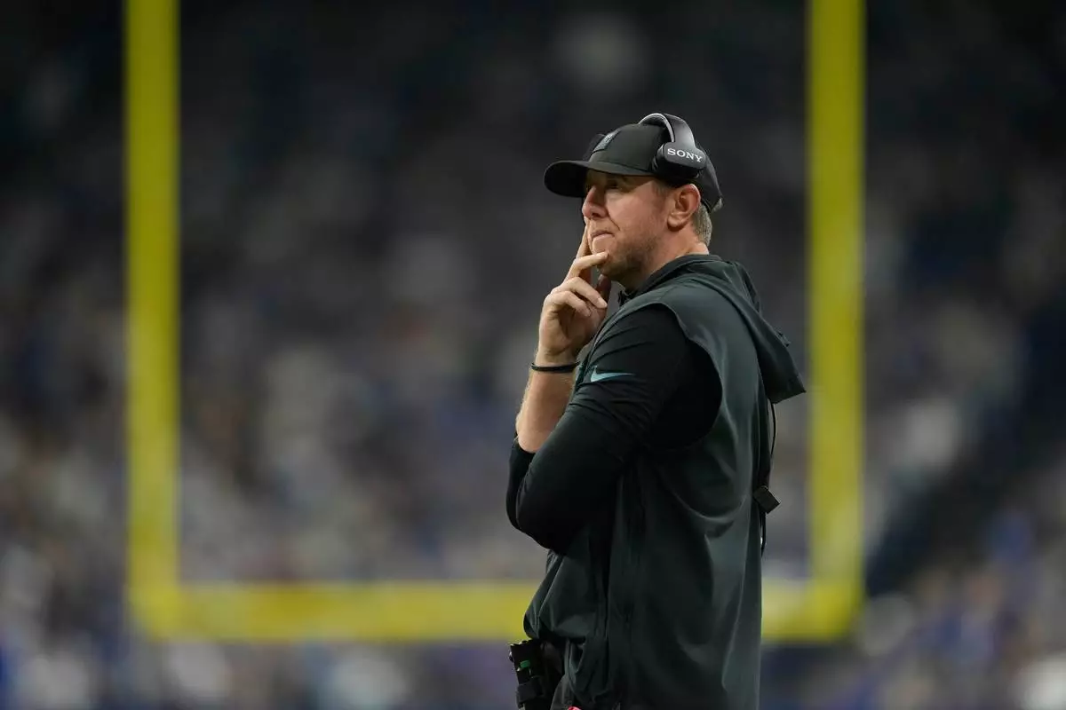 Jacksonville Jaguars head coach Liam Coen watches from the sidelines during the second half of an NFL football game against the Indianapolis Colts Sunday, Dec. 28, 2025, in Indianapolis. (AP Photo/Carolyn Kaster)