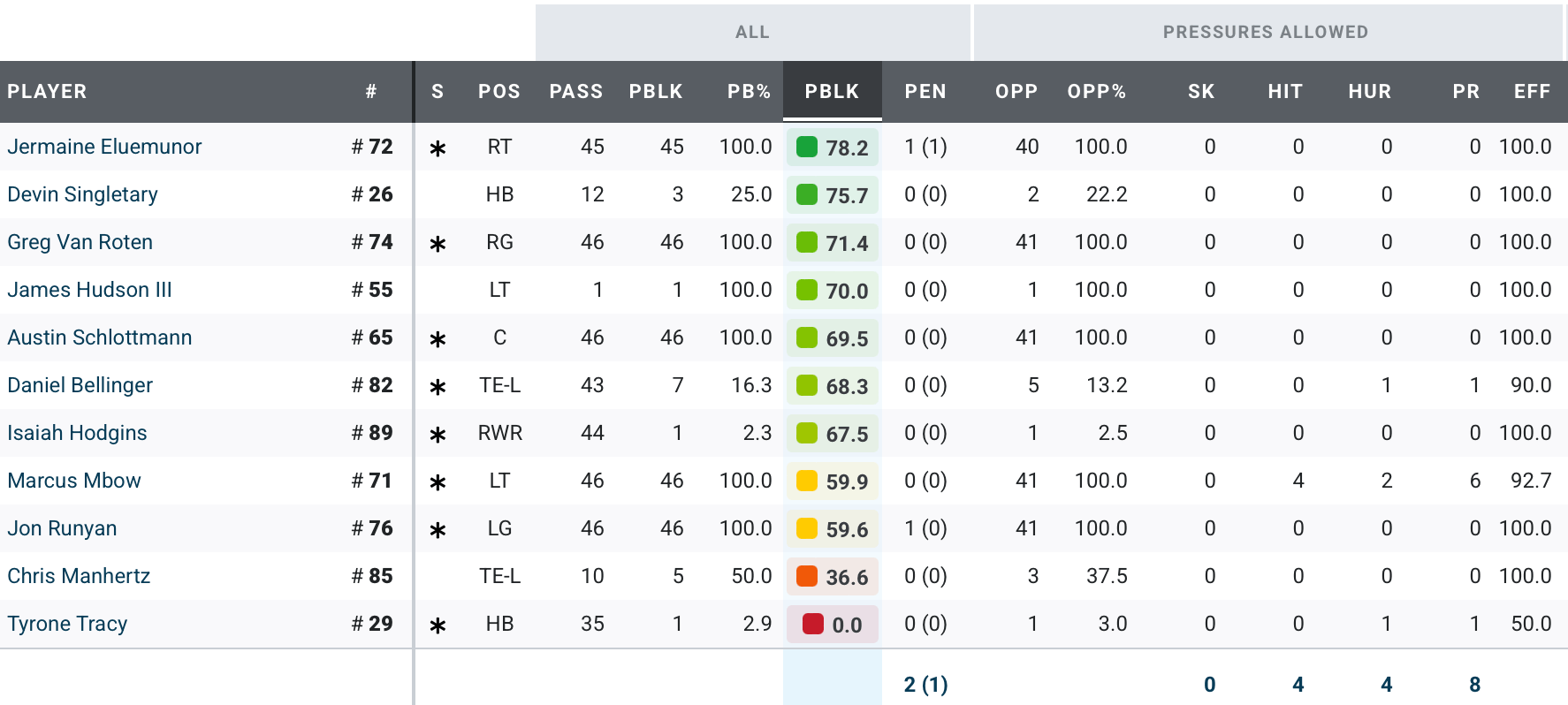 Finally, the run blocking:
