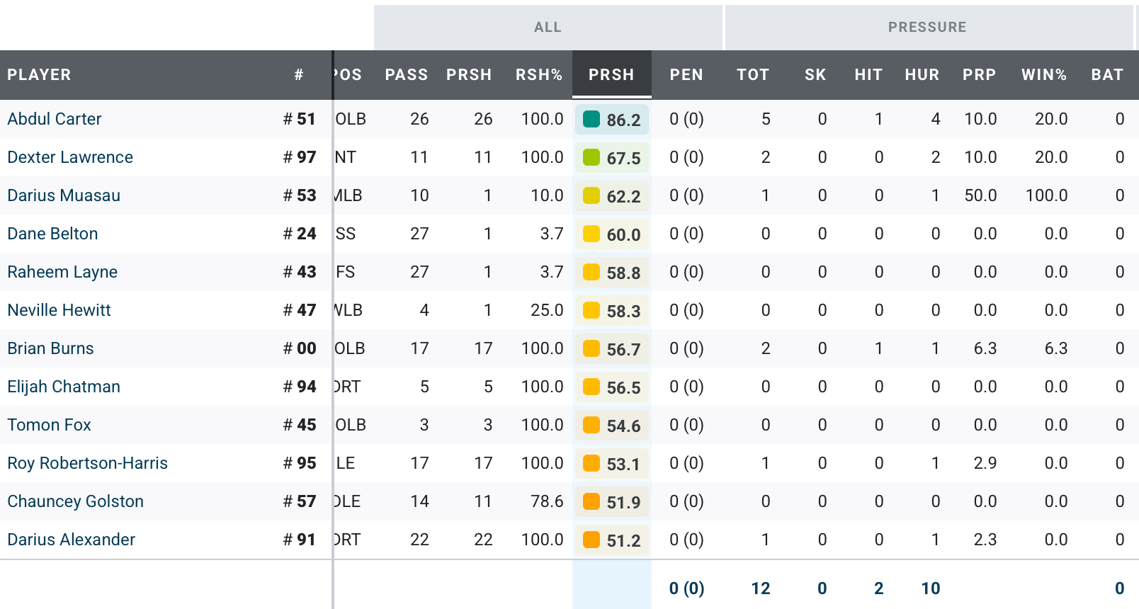 Let’s look first at the pass rush:
