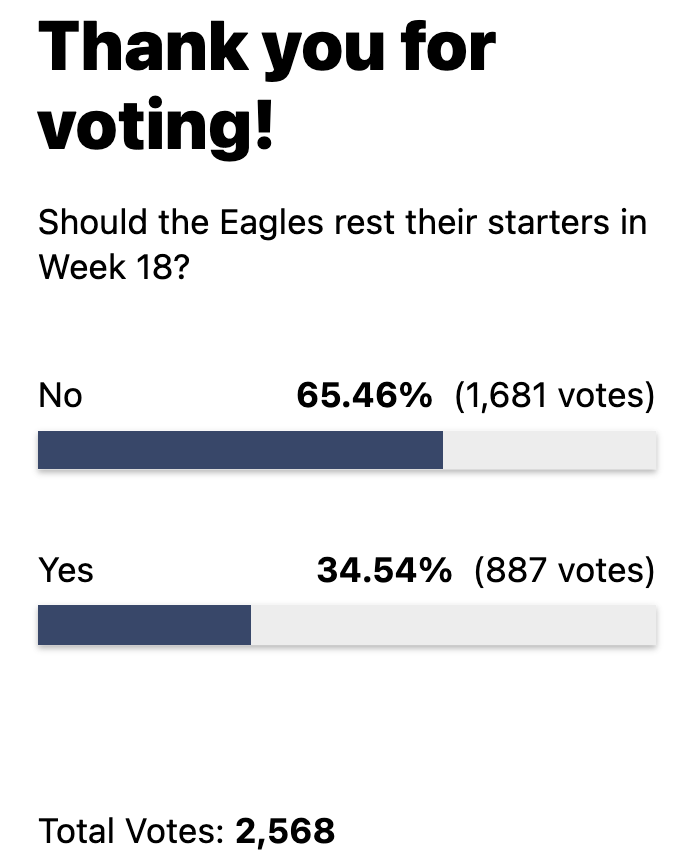 It’s obviously moot now. The Eagles are the No. 3 seed. Maybe the rest will help them beat the San Francisco 49ers in the Wild Card round. Perhaps they’ll even go on another Super Bowl run. I’m hardly ready to rule it out.