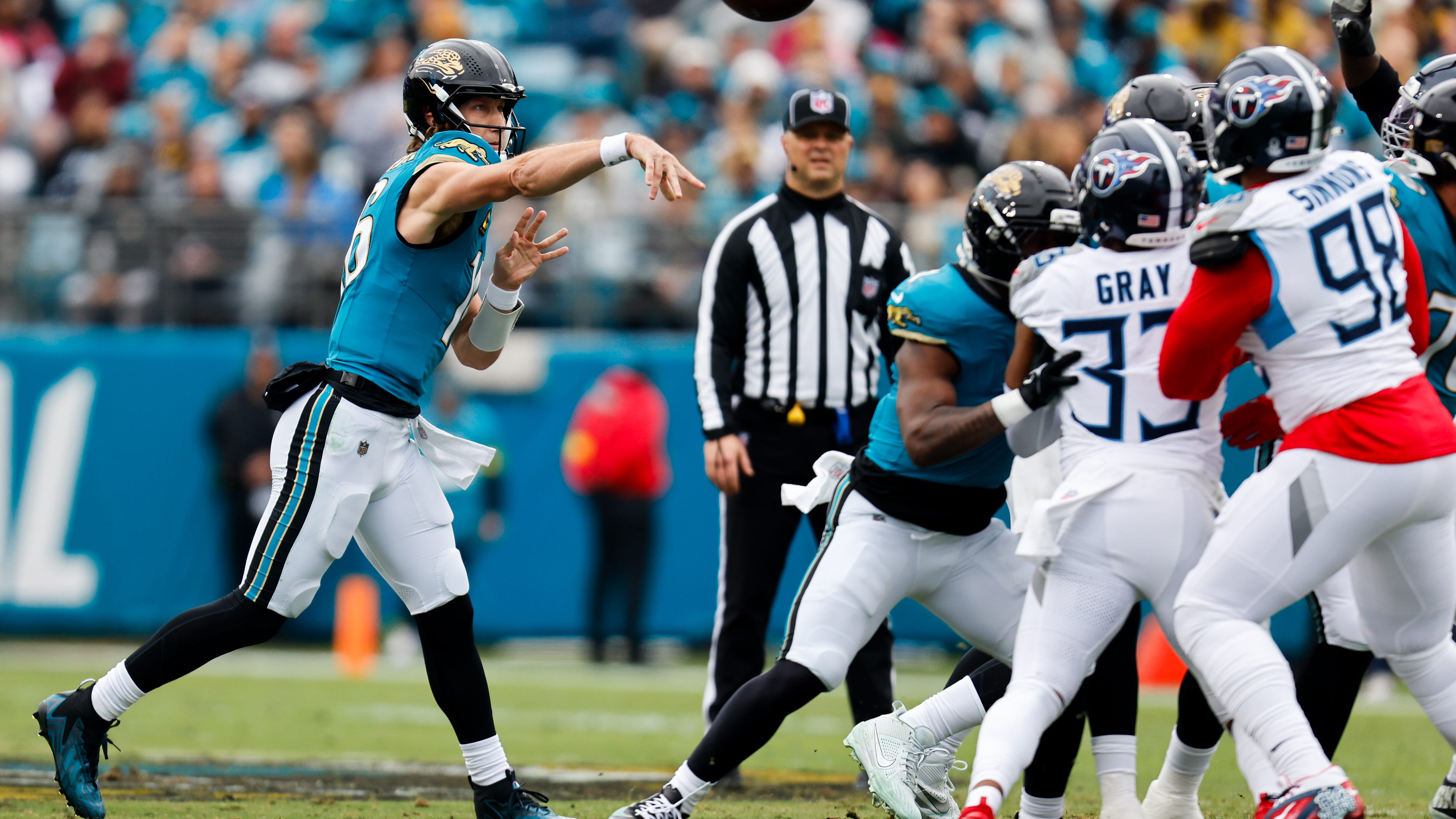 Lawrence threw for 255 yards on 22 of 30 attempts (73.3 percent) in last week’s 41-7 victory over the Tennessee Titans that clinched the AFC South Championship. Lawrence had a 131.9 passer rating, surpassed 4,000 yards for the third time in five years and threw three touchdown passes to give him 29 for the season.Â