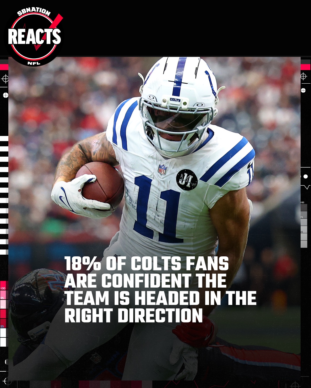 However, after the Colts season snowballed, that number now sits at a lowly 18% fan confidence percentage.