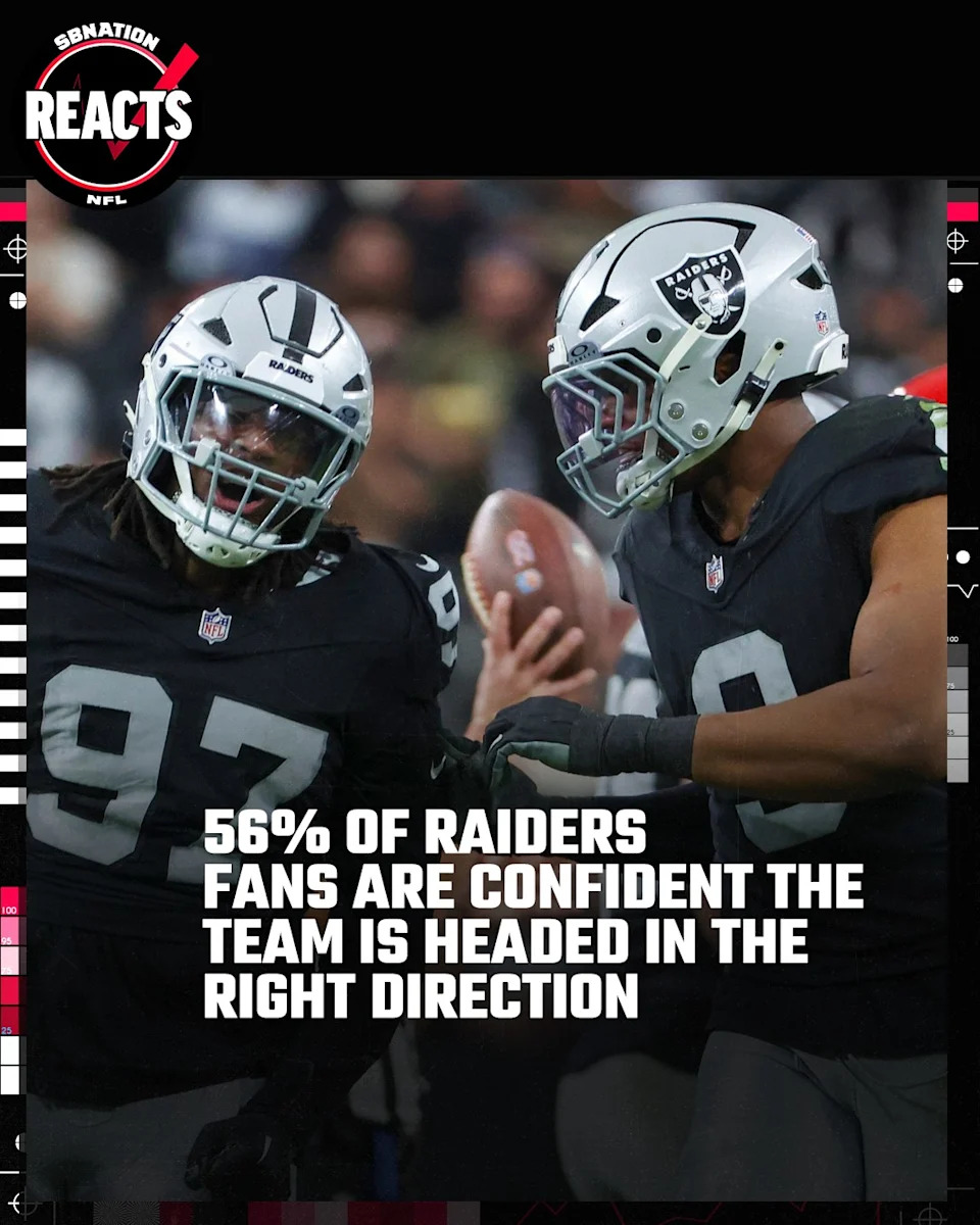 In this week’s SB Nation Reacts, we ask Raider Nation what their confidence is in the team’s direction. Raider Nation responded with excitement having their highest confidence since Week 1 of the 2025 season. It rose all the way to 56% of Raiders fans believing in the team’s direction after securing the number one pick.