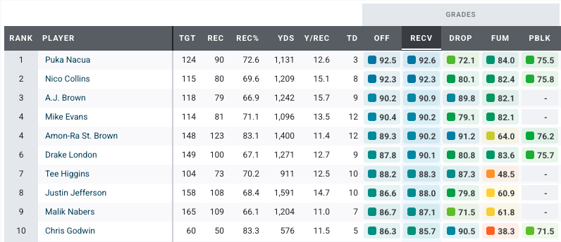 Collins has entered the conversation as a Tier 1 wide receiver, as he has put up 90.0-plus receiving grades in each of the past two years. Anderson made a strong leap in Year 2, posting an 88.8 overall grade and a 78.3 pass-rush grade. Stingley produced a team-best non-quarterback WAR of 0.63 in 2024, the third-highest mark among all cornerbacks.g all corners in the NFL.