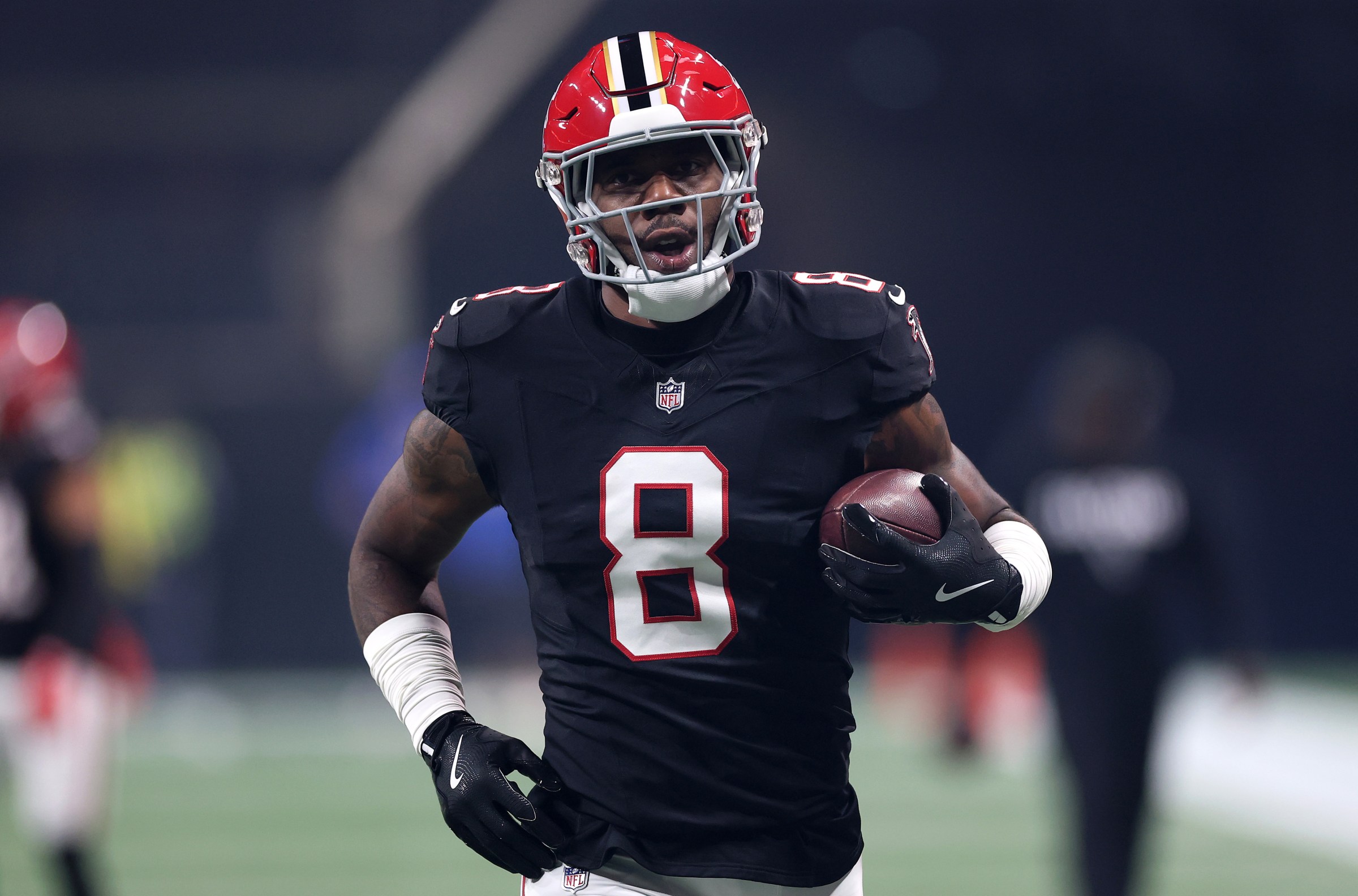 ATLANTA, GEORGIA – DECEMBER 29: Kyle Pitts Sr. #8 of the Atlanta Falcons warms up before the game against the Los Angeles Rams at Mercedes-Benz Stadium on December 29, 2025 in Atlanta, Georgia. (Photo by Kevin C. Cox/Getty Images) Getty Images