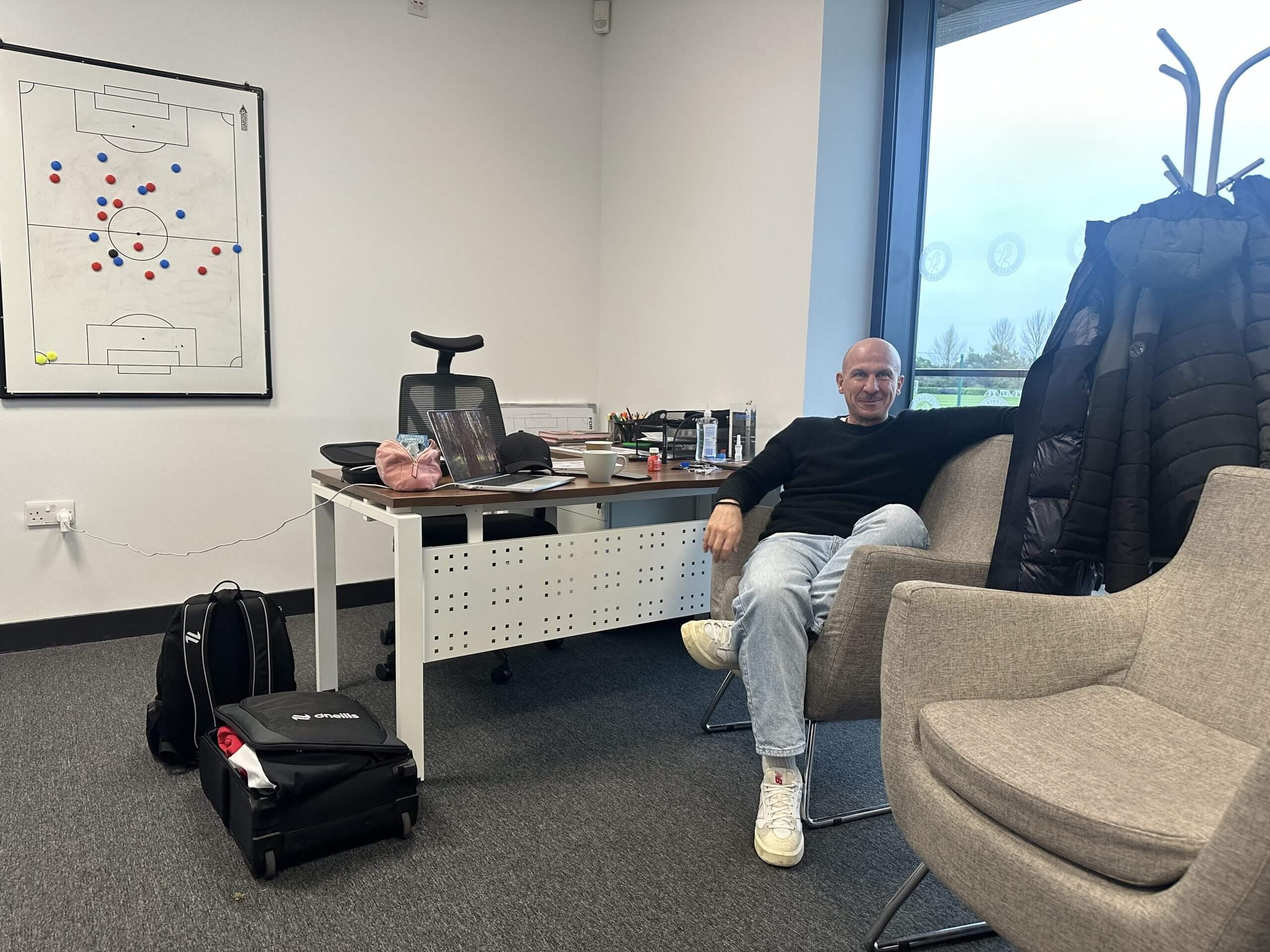 It’s a beautiful December day, so much so that Struber puts his sunglasses on in the car. He’s also wearing blue jeans and white trainers, which is an unusual look for a manager on a matchday in England.