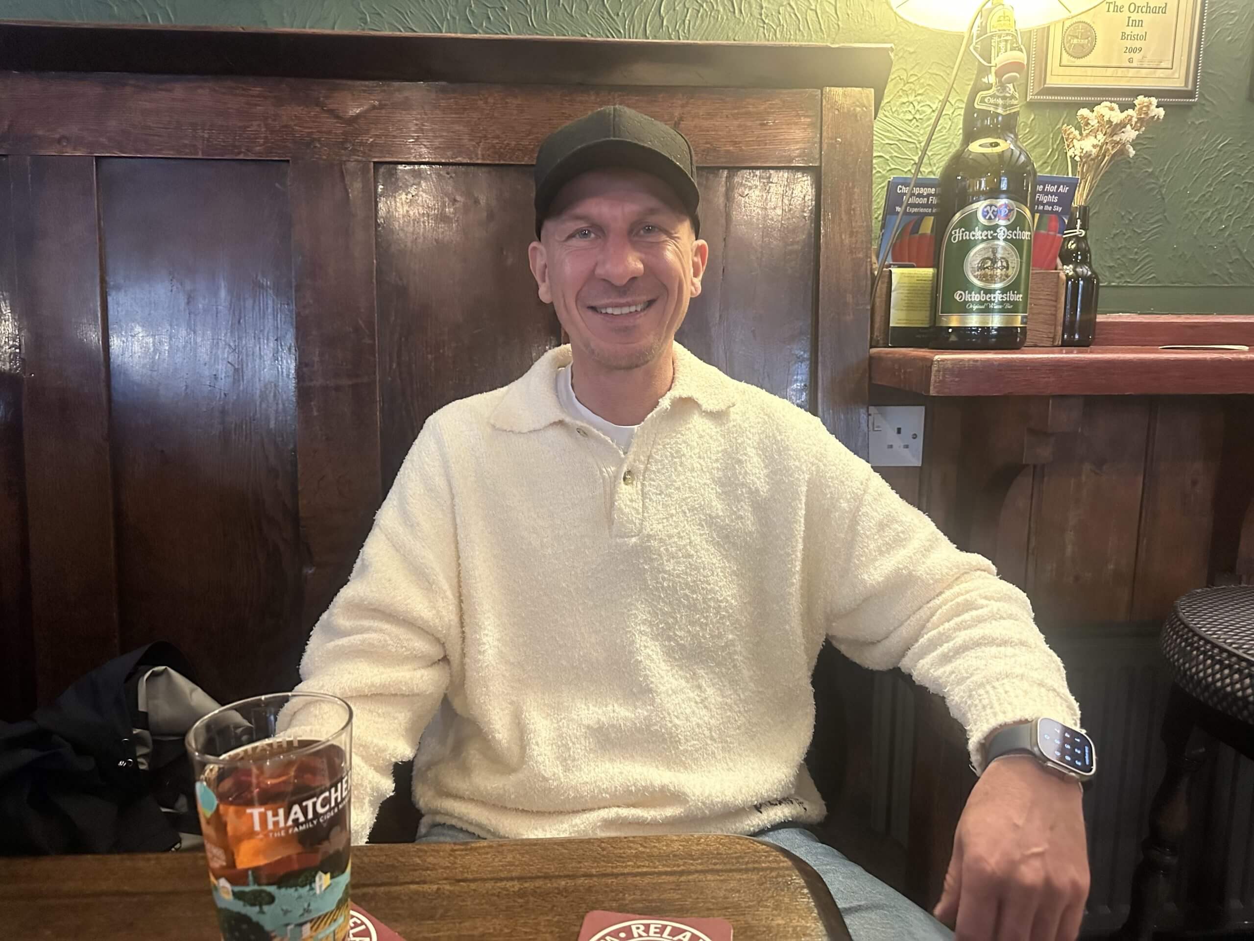 Struber partakes in the Bristol ‘religion’… cider (Stuart James/The Athletic)