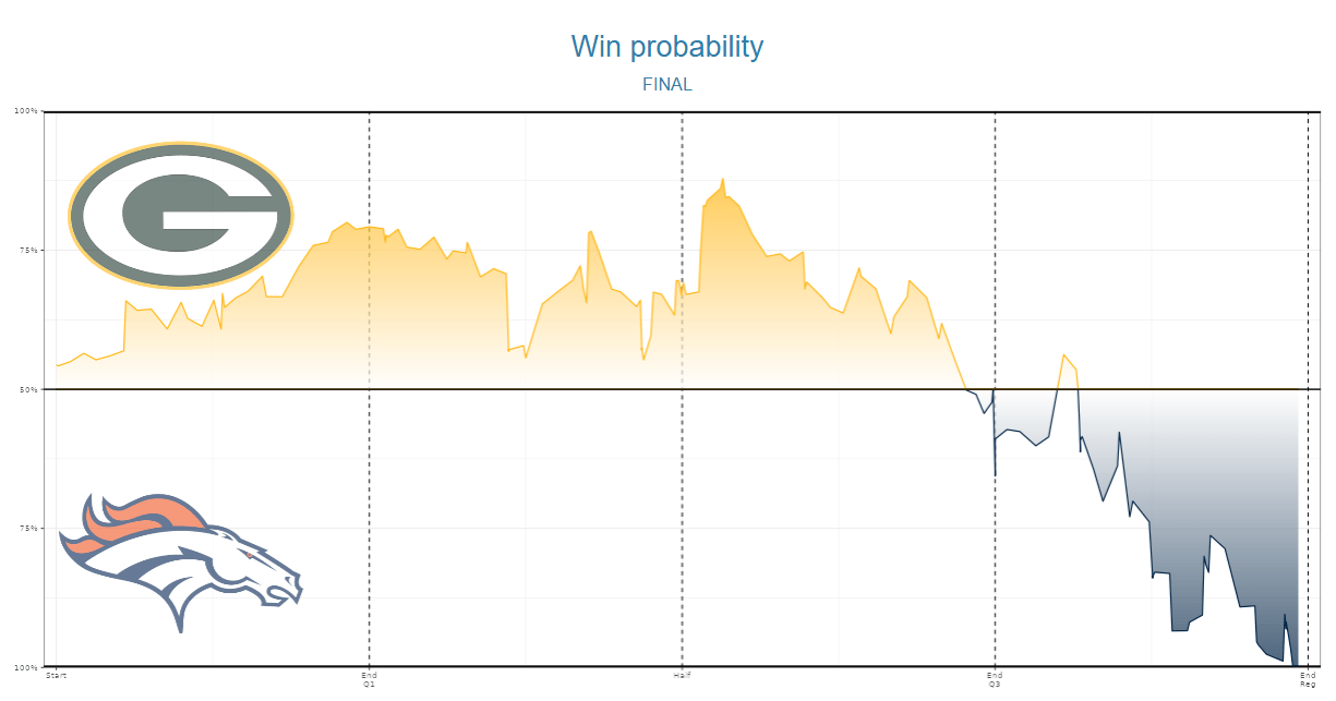 And so my point here isn’t that in all of these Packer games, they had a 90 percent-plus chance of winning. It’s not that exact. However, I don’t think we really need to be THAT exact with our percentages when discussing this problem! My point is that they were VERY likely to win all of these.