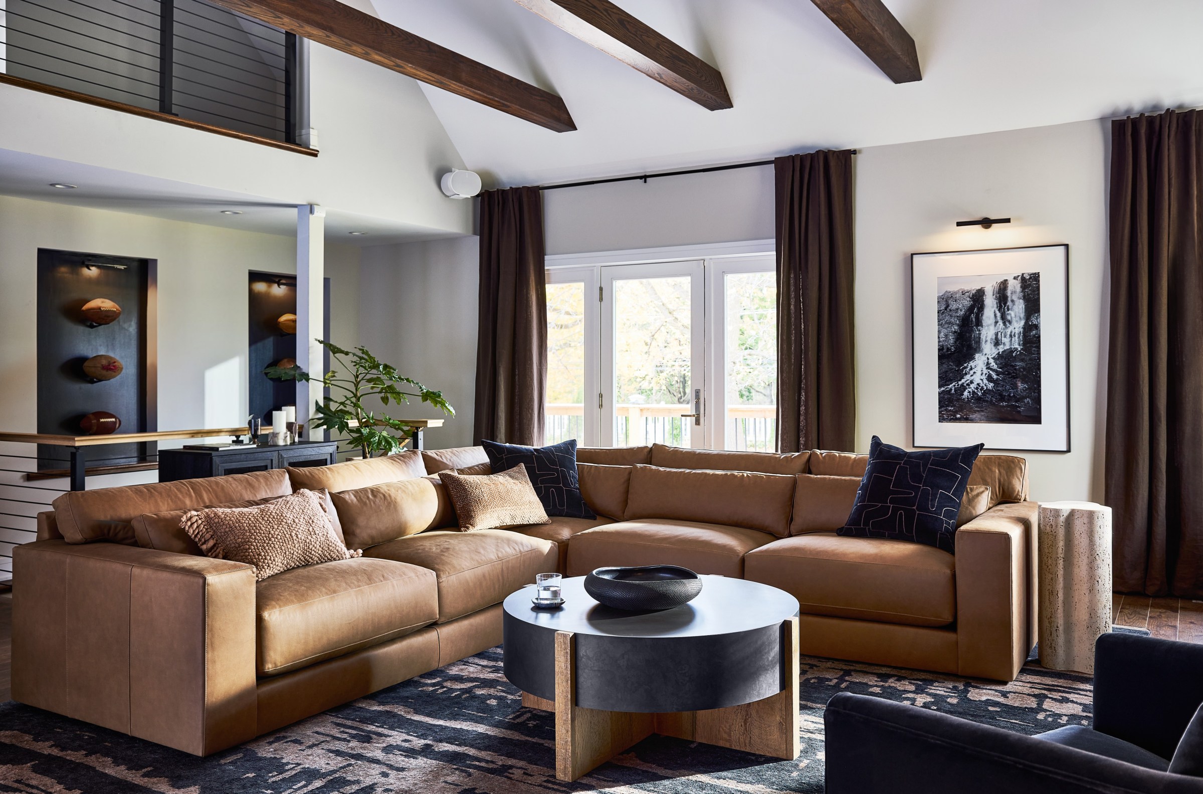 I also wanted to know what Crate & Barrel thought they did especially well. “The team is especially proud of the living room, Colston’s favorite space, anchored by big, comfortable seating like the Retreat Sofa and a football wall that adds character while still feeling calm, cozy, and made for bringing people together.”