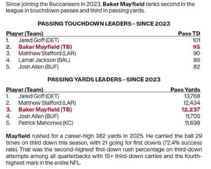 What happened to Mayfield in the second half of the season is unclear. If Joe were Team Glazer, Joe would have to wait to see how Mayfield bounces back in 2026 before Joe would drop a bag in his lap.