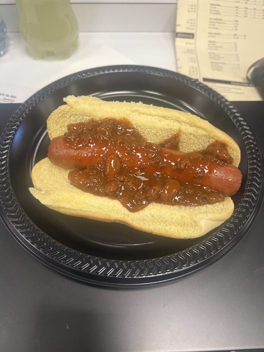 Staff rolled out a variety of sandwiches pregame. I indulged in a roast beef sandwich and tomato soup, but it wasn’t my cup of tea. Not bad, just not my thing. Halftime rolled around, and there they were in all their glory: SHI Stadium chili dogs. If you know, you know. I was in love. I still haven’t gotten over how delectable those dawgs were.