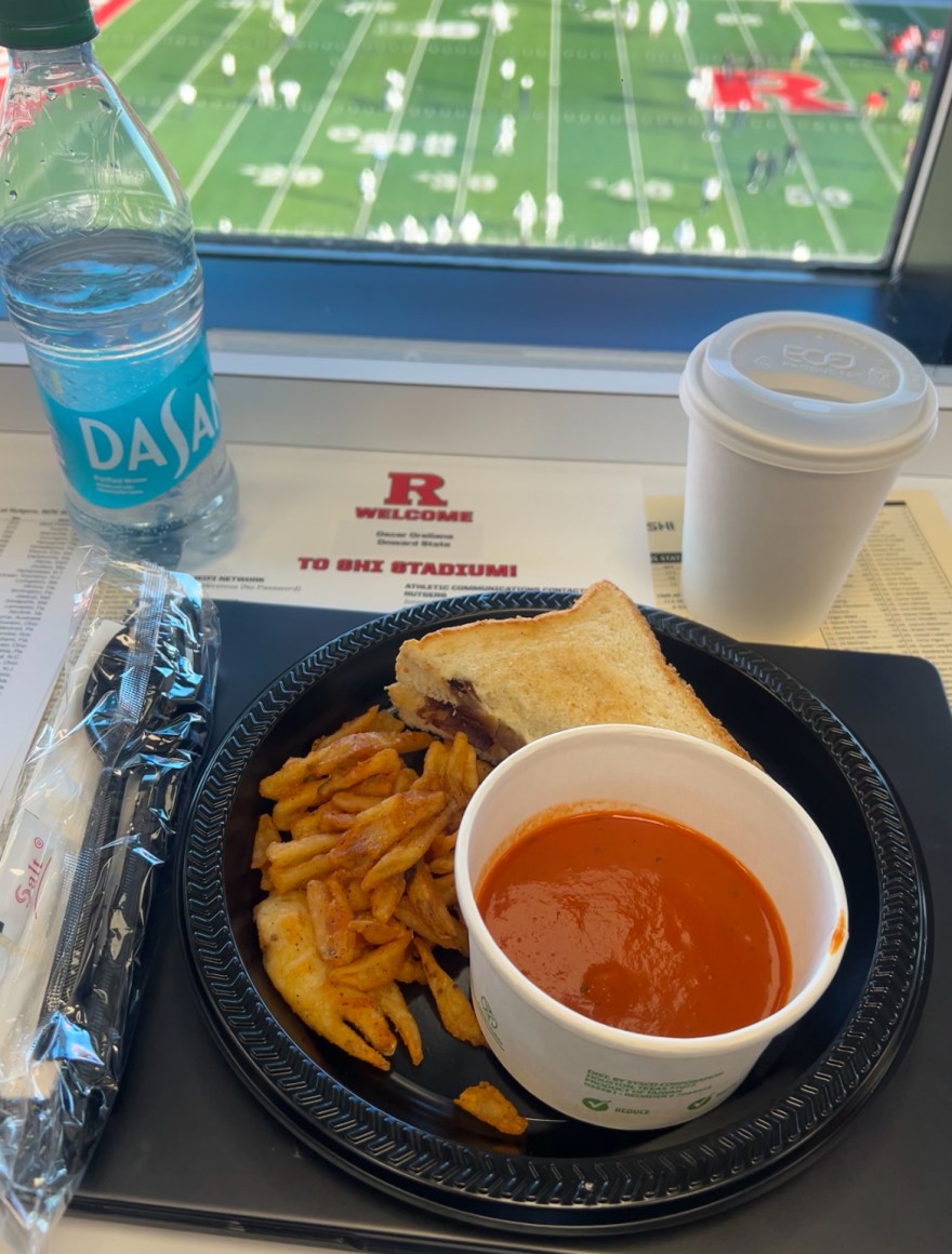 It definitely was the most dated press box we worked in, but it was a very fun atmosphere. Rutgers immediately entered my good graces with a much-needed item on the chilly New Jersey day: hot chocolate. I probably drank four cups of hot chocolate. So amazing.