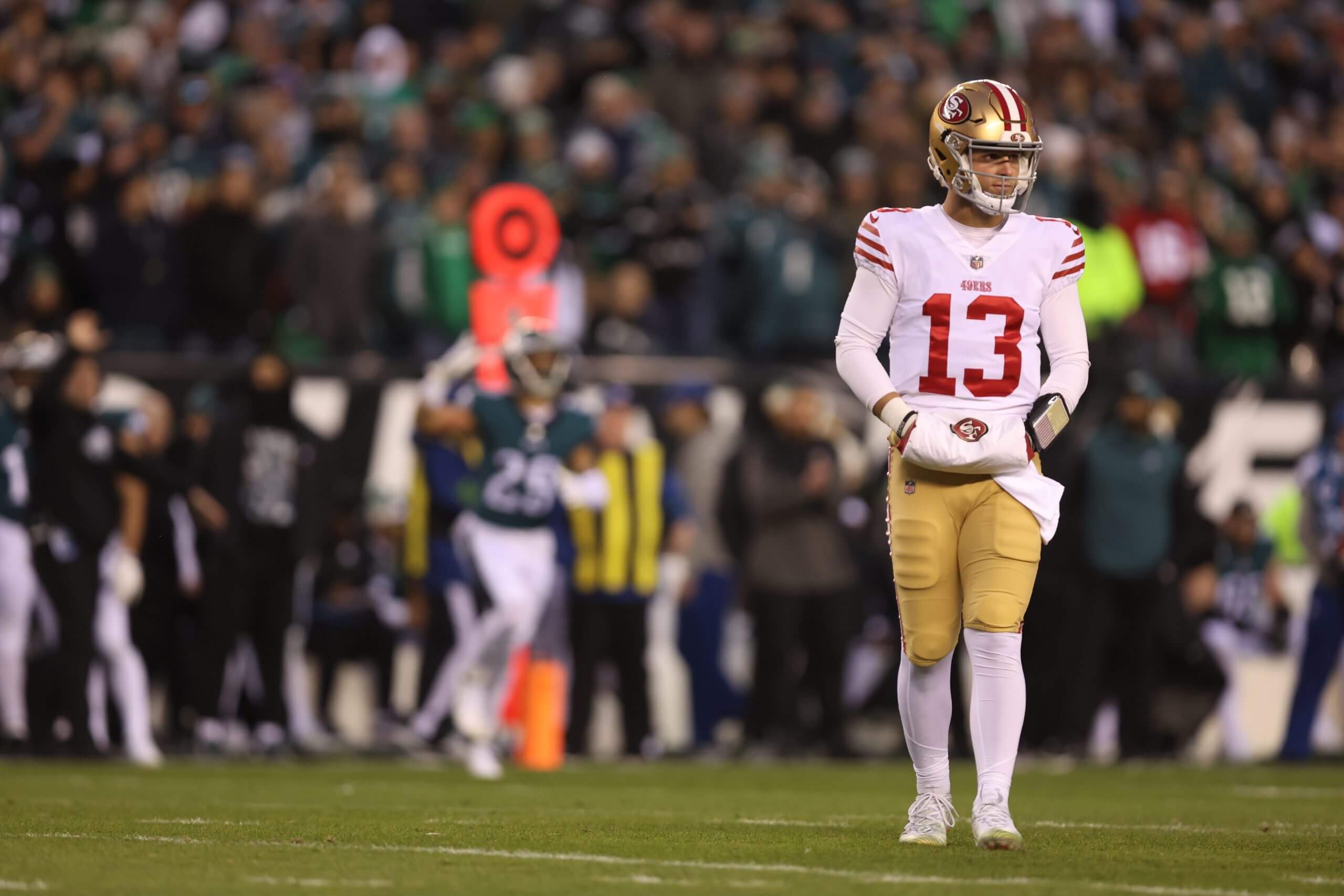 Purdy had won seven consecutive games, including the first two rounds of the playoffs, before being forced to exit the NFC Championship Game. Josh Johnson was tabbed to finish the game but suffered a concussion in the third quarter, which, for a brief moment, had running back Christian McCaffrey readying a helmet with a radio before Purdy returned. Purdy was unable to throw, however, and simply had to hand the ball off for the remainder of the game.