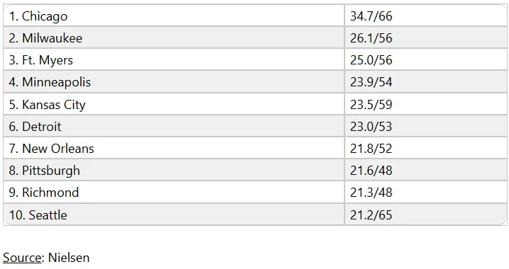 Jeff Agrest, the Chicago Sun-Times deputy sports editor/media columnist, shared that the local rating equates to about 1.27 million households watching on NBC in the Chicago market, which is damn near everyone.