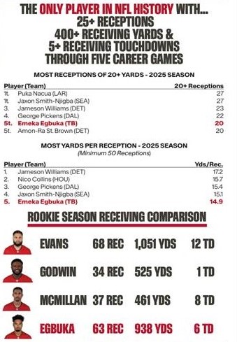 * And the third question is, what the hell happened to Emeka Egbuka? Before the bye, Egbuka looked like a slam dunk Rookie of the Year winner and seemed to have been the best rookie wide receiver to come into the NFL in years.