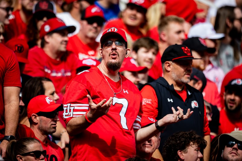 A fan reacts during a game between the University of Utah and Texas Tech at Rice-Eccles Stadium in Salt Lake City on Saturday, Sept. 20, 2025. | Tess Crowley, Deseret News