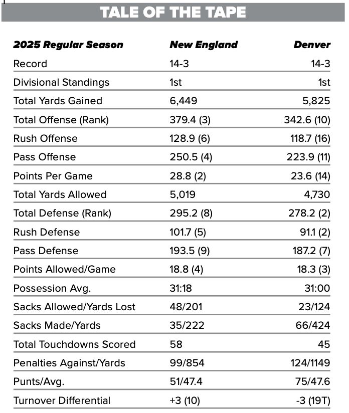 Online: Live Box | Patriots media notes | Broncos media notes |Â Flipcard