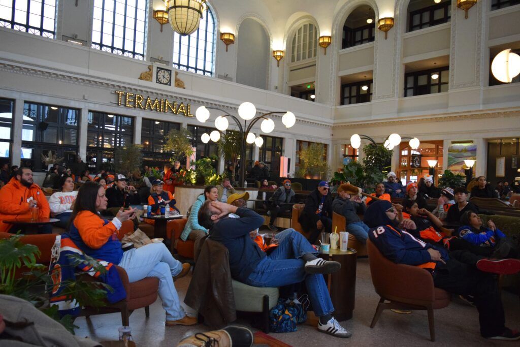 The rare Patriots fans cheered, like Cassidy Morneau and Corey Dezzit, who are from Connecticut but recently moved out to Colorado. They had been at the game prior to, searching for warmth at Union Station after things seemed wrapped up.