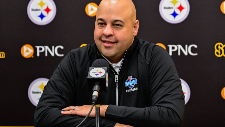 Pittsburgh Steelers general manager Omar Khan during the 2025 NFL Draft on April 26, 2025. — Ed Thompson / Steelers Now