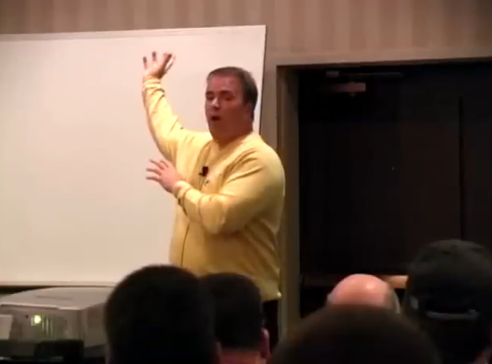 Much of the beginning of his clinic focused on a basic five-step drop from under center. A sign of the times that isn’t as relevant today but it’s a building block of how McCarthy views footwork. He broke down the purpose of each step under three main umbrellas: getting away from center, coming under control, and getting to a landmark to establish the protection (if a quarterback drops too deep, his tackle isn’t setting properly and the rush will win).