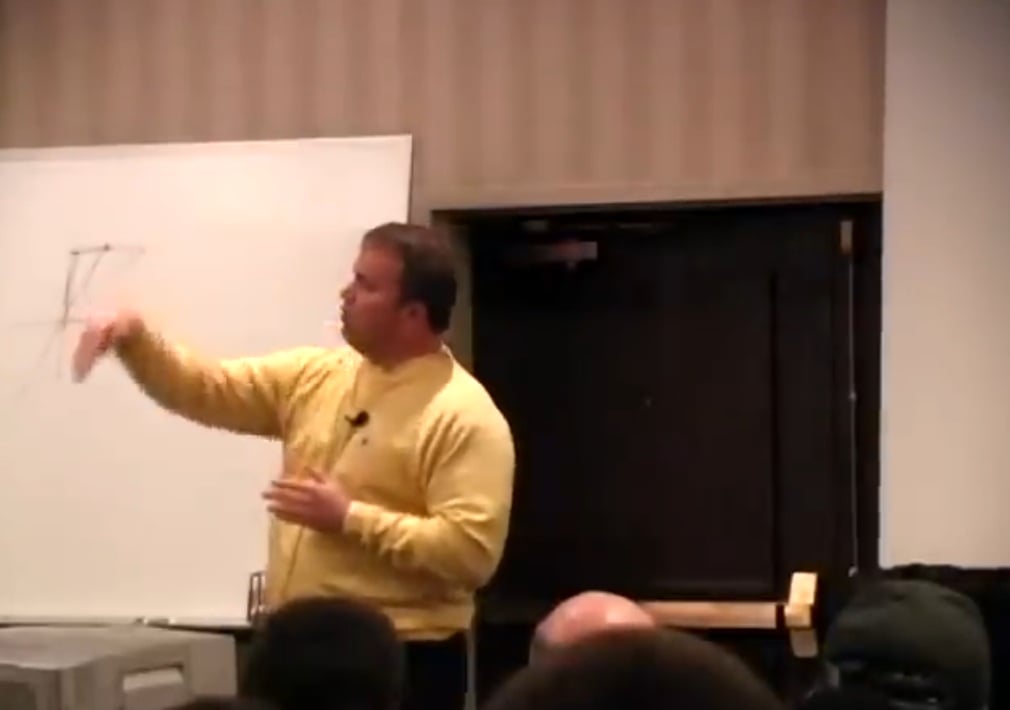 He wants quarterbacks to drop back straight down the line. Those with tight hips will fall off that line. McCarthy showed a clip of a young Aaron Rodgers. Watch his right foot swing too far around on his initial drop, taking him off-line.