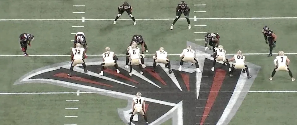 By season’s end, Atlanta finished with the seventh-highest blitz rate on passing downs and the second-highest stunt rate on running downs. Stunting on running downs is an easy way to change the math in the box for defenses without sacrificing coverage on the back end. There are different ways, from line movements all in one direction to last-minute reductions, but Morris keeping his players on the move is a great sign.
