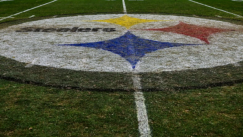 The Pittsburgh Steelers’ midfield logo at Acrisure Stadium during a Wild Card playoff game against the Houston Texans. Ed Thompson/Steelers Now