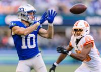 The Yakima native and Super Bowl MVP when the Rams won it all back in 2022 started in the slot on the right side of the formation and ran a crisp underneath drag route to break free from Rams cornerback Cobie Durant. After snagging the ball thrown by Darnold, Kupp had just enough separation to reach out past the first down line as he was being corkscrew tackled to the turf.
