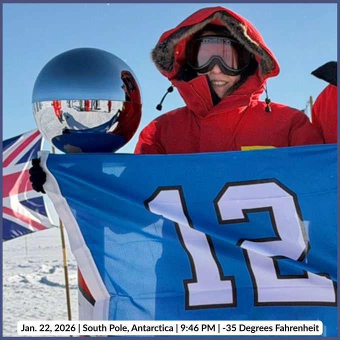 SOUTH POLE—Senator Maria Cantwell (D-WA) showed her support for the Seattle Seahawks in Antarctica – the world’s most remote, and isolated, continent – ahead of the Seattle sports team’s Super Bowl matchup against the New England Patriots Sunday.