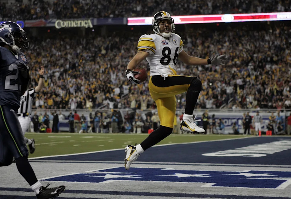 Super Bowl XL (Steelers 21, Seahawks 10): Pittsburgh Steelers wide receiver Hines Ward jumps in the air and scores after catching a 43-yard touchdown pass from fellow wideout Antwaan Randle El.