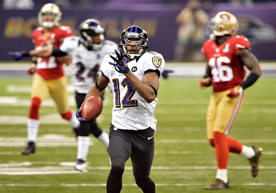 Super Bowl XLVII (Ravens 34, 49ers 31): Baltimore Ravens return specialist Jacoby Jones (12) returns a kickoff for a Super Bowl record 108 yards against the San Francisco 49ers during the third quarter at the Mercedes-Benz Superdome.