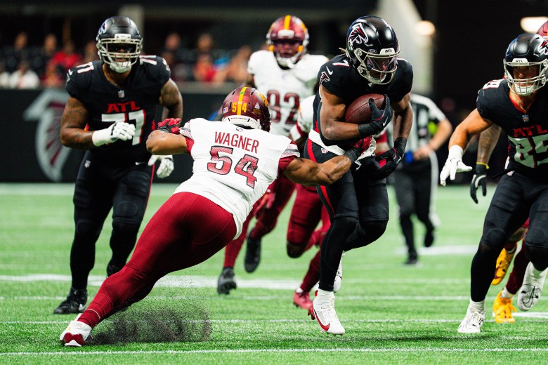 **FILE** Washington Commanders linebacker Bobby Wagner makes a tackle in the Commanders’ 30-24 victory over the Atlanta Falcons in December 2024. (Abdullah Konte/The Washington Informer)