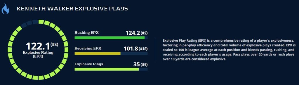 That’s because Walker went scorched Earth in the playoffs, averaging 139 total yards while scoring four TDs. He averaged 24.9 fantasy PPG, a number that would’ve put him at RB1 for the season ahead of Christian McCaffrey. Obviously, it’s a small sample size, and he did that without Zach Charbonnet on the field, but producing like that against playoff competition is mightily impressive.