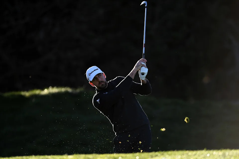 Aaron Rodgers plays during the first round of the AT&T Pebble Beach Pro-Am golf tournament at Spyglass Hill Golf Course on Feb. 8, 2018.