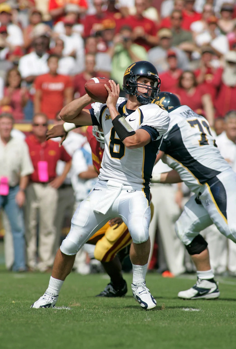 California Golden Bears quarterback Aaron Rodgers looks to throw against USC at the Los Angeles Coliseum on Oct. 9, 2004.