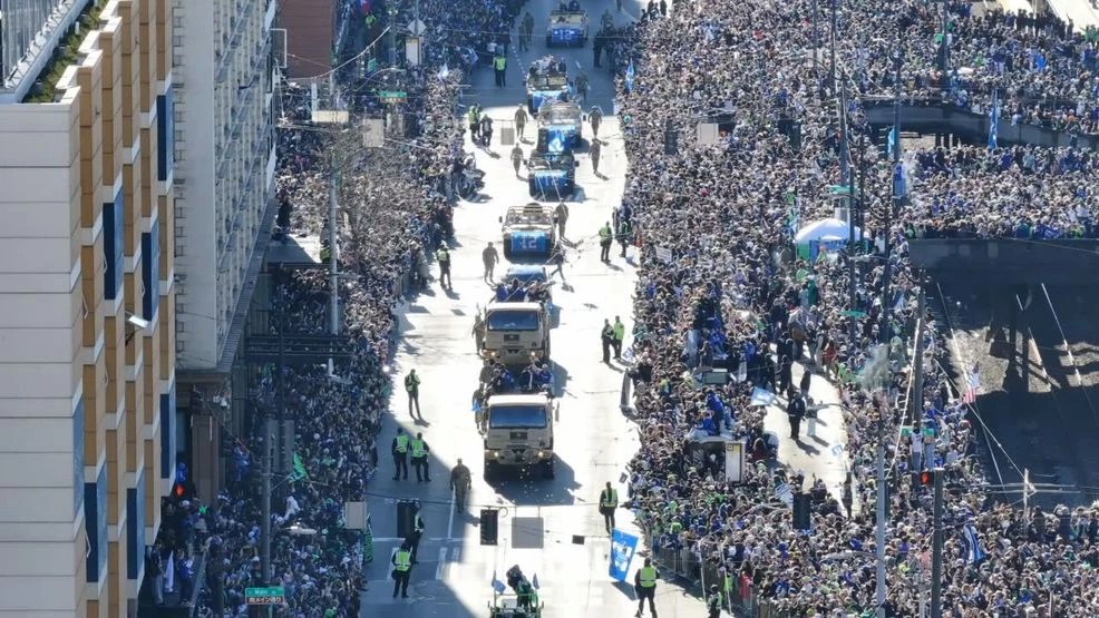 The celebration continued in downtown Seattle on Wednesday, Feb. 11, with an estimated 1 million fans in attendance for the Seahawks’ World Champions Parade (according to KING 5 news) following their Super Bowl LX victory. It began with a trophy celebration at Lumen Field before the parade traveled along 4th Avenue through the heart of the city, with the fans turning out to cheer on the team and show their pride.
