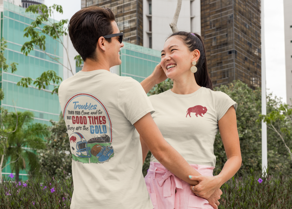 Every Monday, we launch a two-week campaign of a new Buffalo-themed t-shirt design. Every purchase results in a donation to a local family in need. After the campaign ends, the shirt is typically retired. A new design is released, and a new family benefits from your fandom!