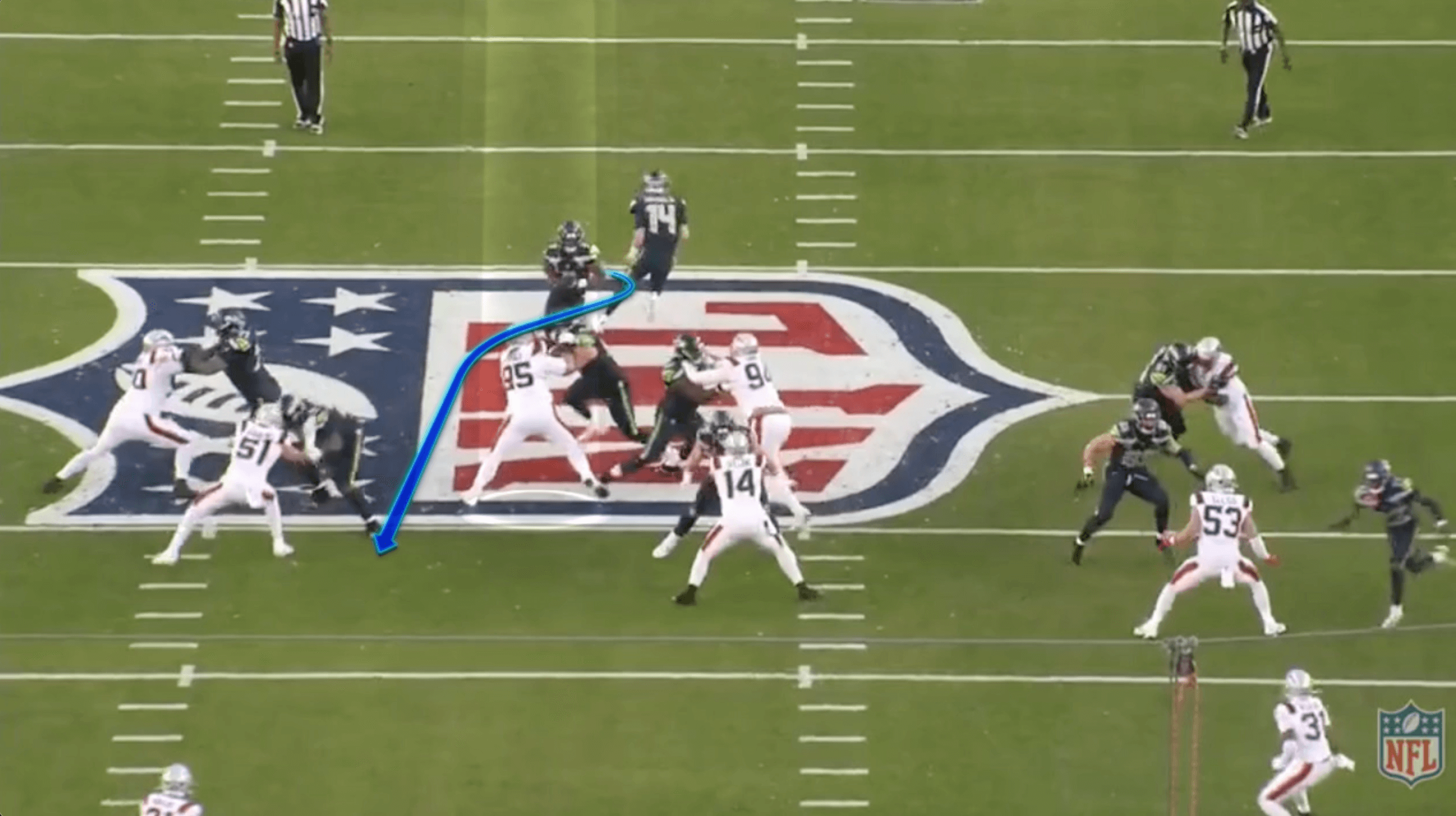 Darnold initially looked to Smith-Njigba to draw the defense that way, but the play design was a slip screen to Walker in the opposite direction.