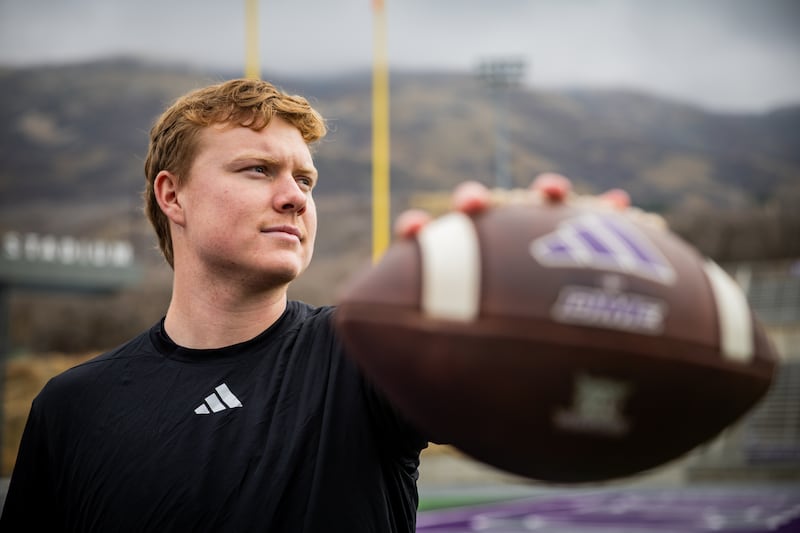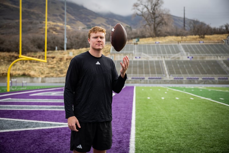 Weber State quarterback Devin Brown poses at Stewart Stadium in Ogden on Friday, Feb. 13, 2026. | Tess Crowley, Deseret News