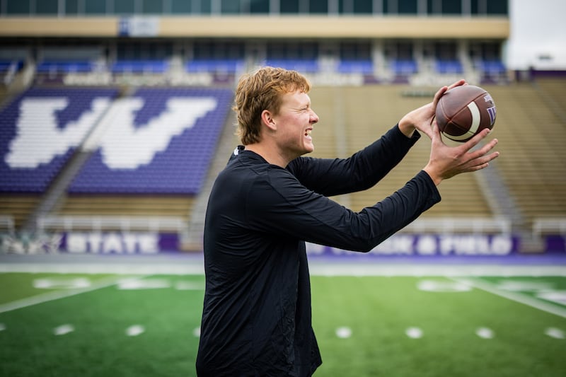 Weber State quarterback Devin Brown throws with his teammates at Stewart Stadium in Ogden on Friday, Feb. 13, 2026. | Tess Crowley, Deseret News