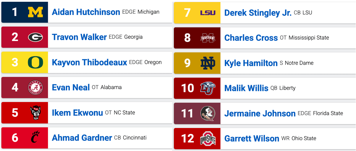 Picks: Kayvon Thibodeaux (5), Evan Neal (7)