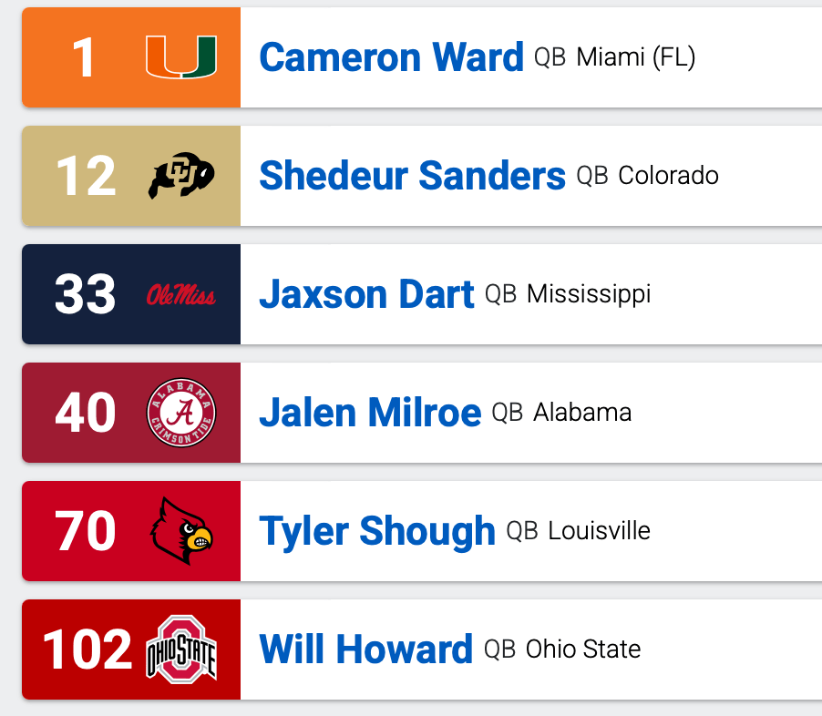 What Schoen should have done: Exactly what he did. Time will tell whether Dart or Shough has the better NFL career, but Dart put an immediate jolt into the Giants’ offense when he became the starter. He is also almost four years younger than Shough. Furthermore, it’s largely forgotten now, but Shedeur Sanders was No. 12 on the consensus big board last year and Jalen Milroe was No. 40: