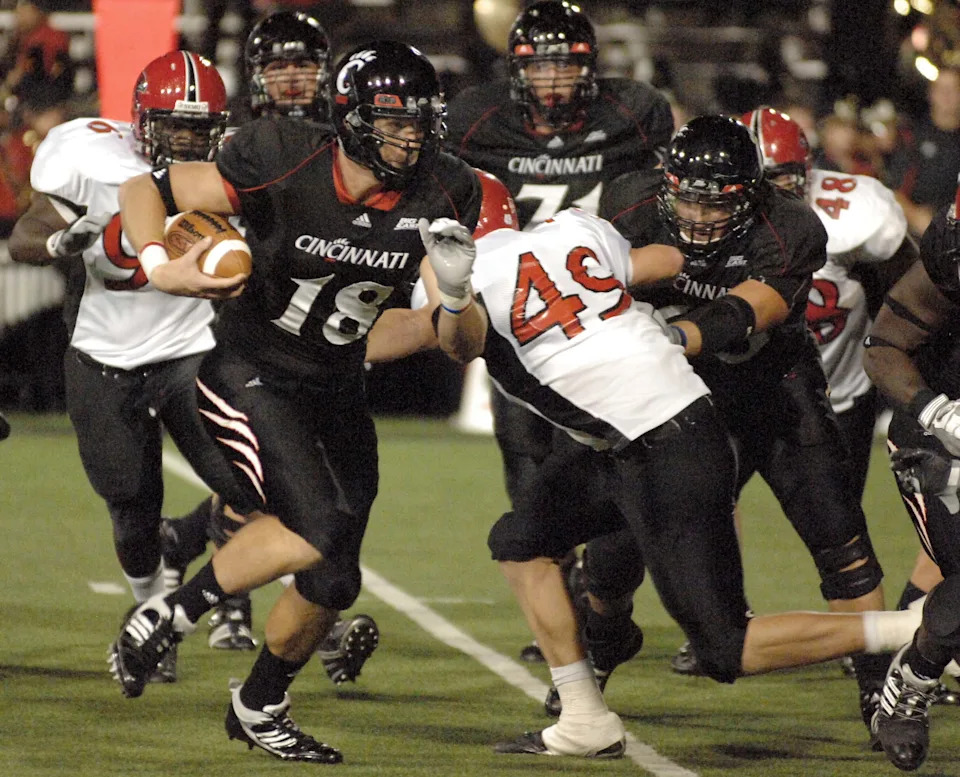 Sept. 12, 2009: Cincinnati’s Travis Kelce (18) rushes with the ball against Southeast Missouri State at Nippert Stadium.