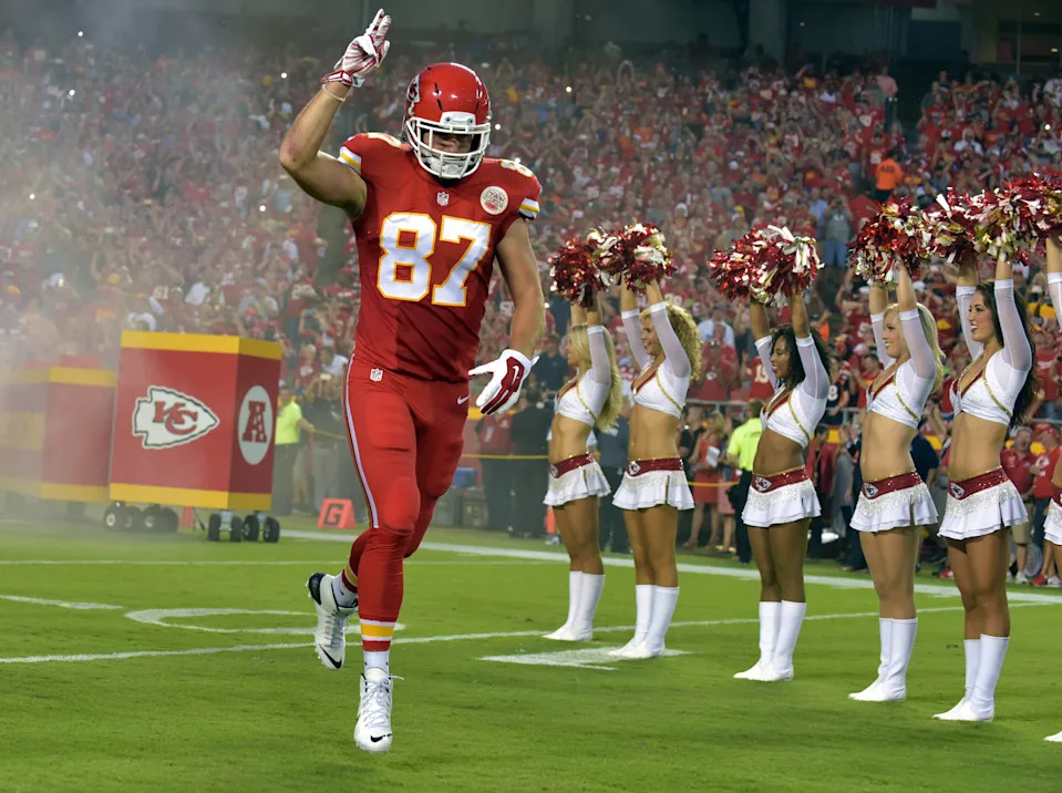 Sept. 17, 2015: Travis Kelce enters the field before the Kansas City Chiefs’ game against the Denver Broncos at Arrowhead Stadium.